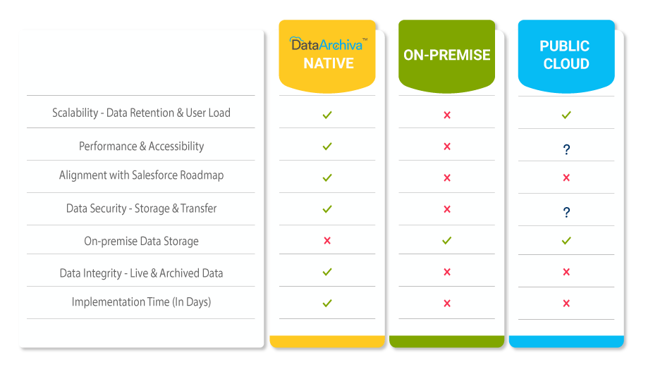 DataArchiva empowers businesses to efficiently archive their Salesforce data while reducing storage costs and ensuring long-term data accessibility. Archive data natively in Big Objects, external cloud platforms (AWS, Azure, GCP, Heroku), or on-premise to simplify compliance headaches, enhance performance, and enjoy a seamless user experience.