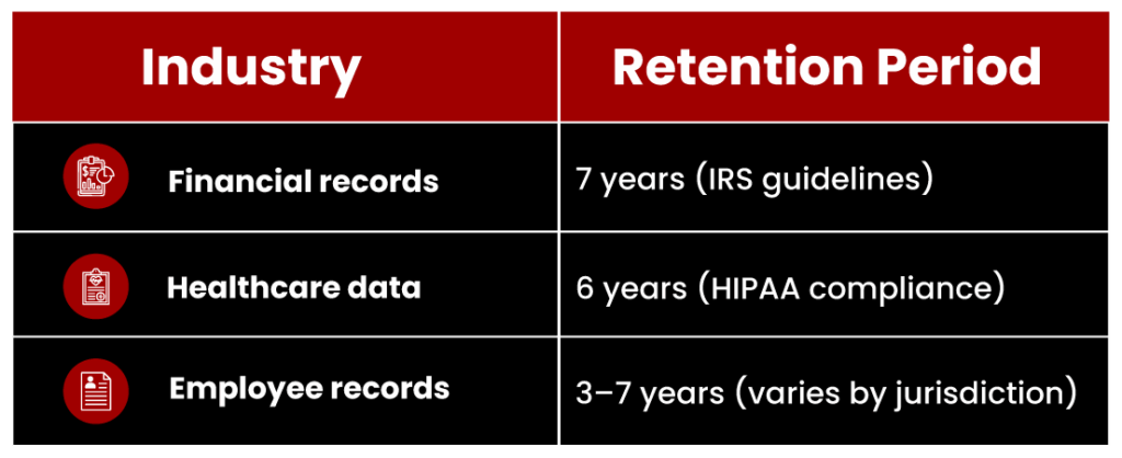 | Compliance | Ensures the required data is retained for a set period | Keeps historical data secure for legal and audit purposes |