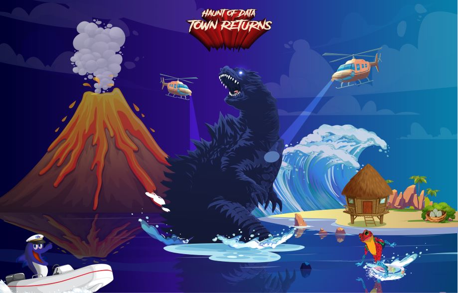 The angry-red eyes, soothed down to a motherly grin when Datazilla embraced its eggs under the comfort of the big scaly arm. The Data Town learned it’s lesson for good that no one messes with DataZilla’s precious metadata, aka the eggs. Hope this made the seagulls realize, not to collect any data that is not it’s own!